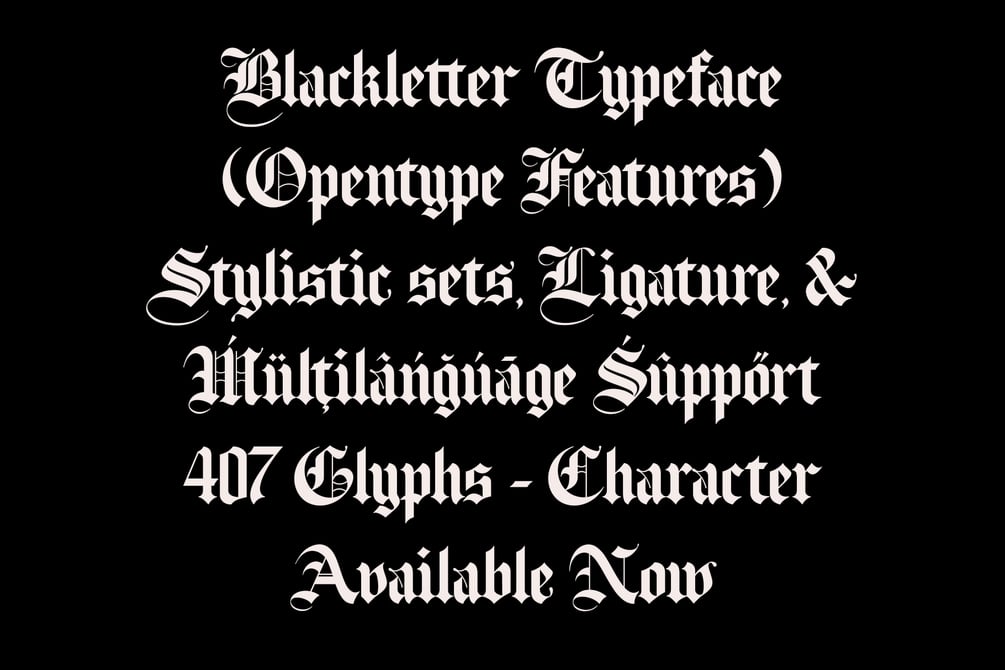Fairville is a blackletter font with a textura - old English style that displays a classic look. Apart from that, this font also has a stylistic set feature which makes the appearance of this font more attractive, and also other features such as ligatures and multi-language support which can perfect your designs with this font.